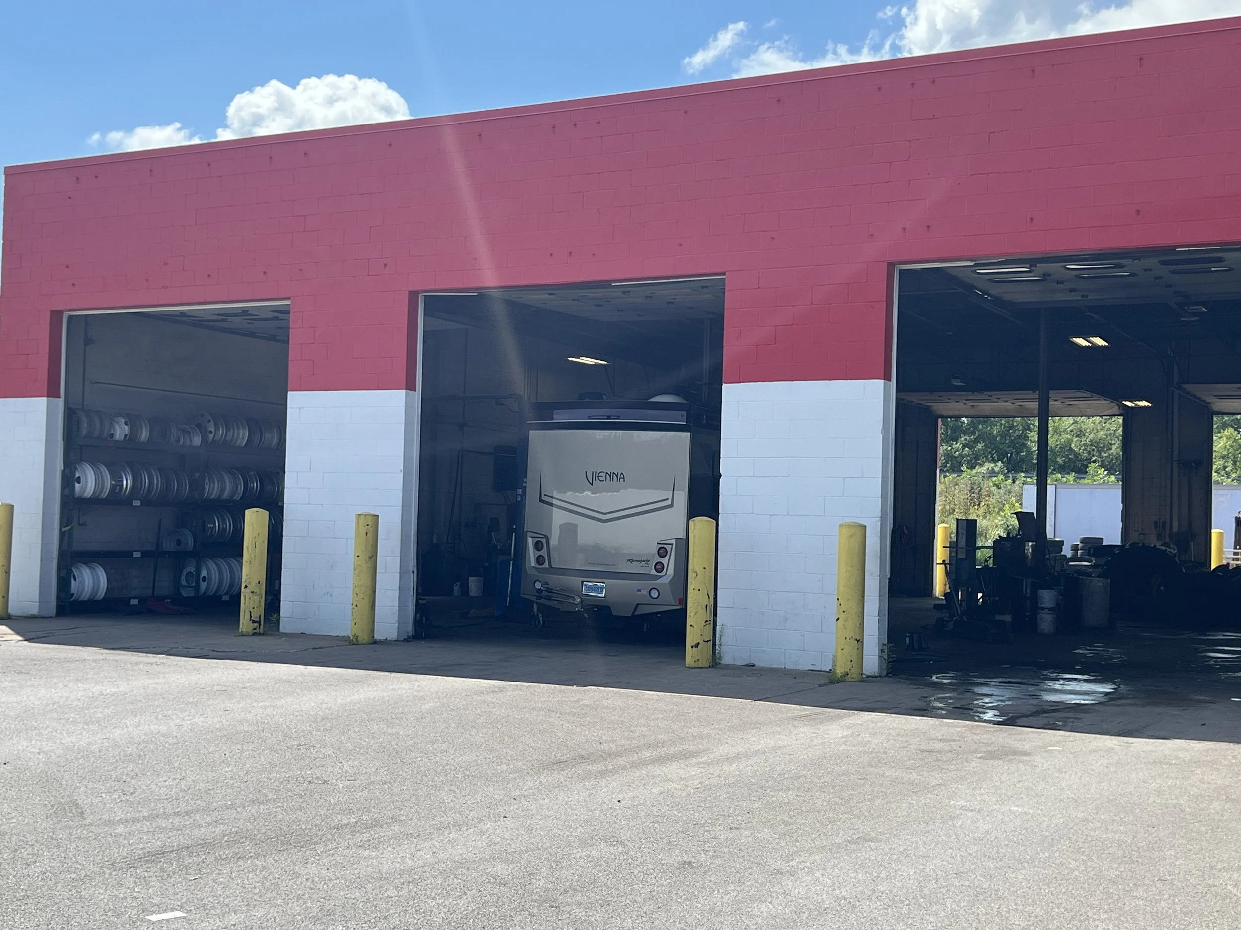 She got right to the task and quickly found Bob Sumerel Tire Company, just off the interstate roughly two miles over the PA / OH border in the town of Hubbard Ohio. Exit 234 drops you into Truck World… I’m not kidding. Trucks everywhere. Truck World has everything for trucks. A restaurant, a tool store, convenience store, showers, game rooms, WiFi, and on and on. And just down the road from TW is Bob Sumerel Tire. We pulled in and went inside to talk to Brian, who appeared to be the manager and was busy on the phone. When he hung up I gave him the details of our issue and he directed me to pull into Bay 2. We unhooked the jeep and pulled into Bay 2 to speak with Mike the mechanic. He told us he would check out the tire and would need about 30 minutes. We headed back to TW for some breakfast in the restaurant.